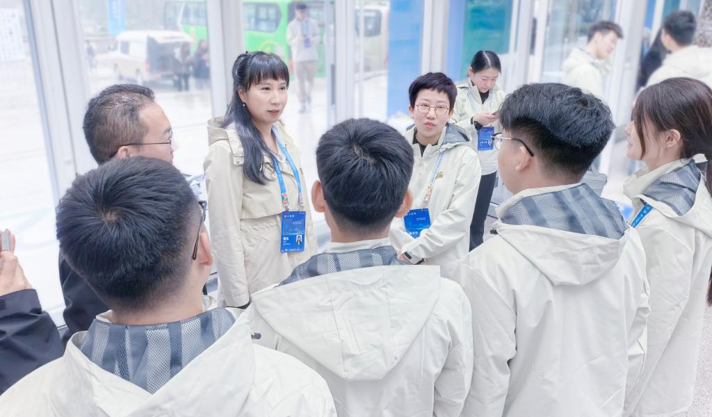 ▲赛前杨頔、永利官网领队朱晓丹鼓舞参赛学生士气现场