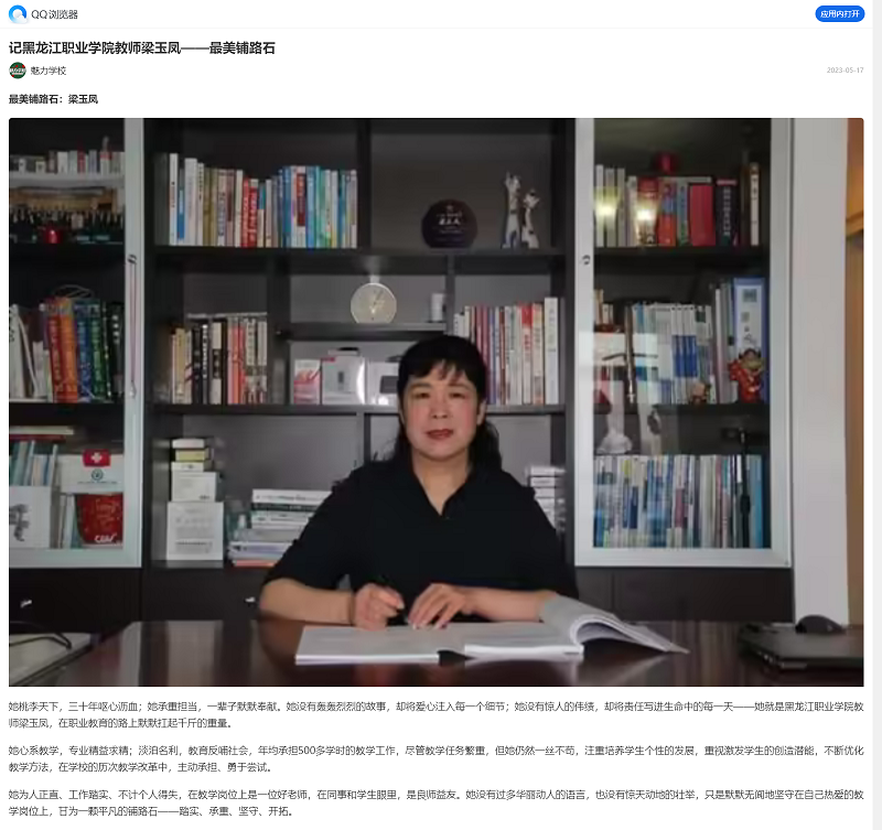 【QQ浏览器】记永利3544am登录官网教师梁玉凤——最㺯铺路石