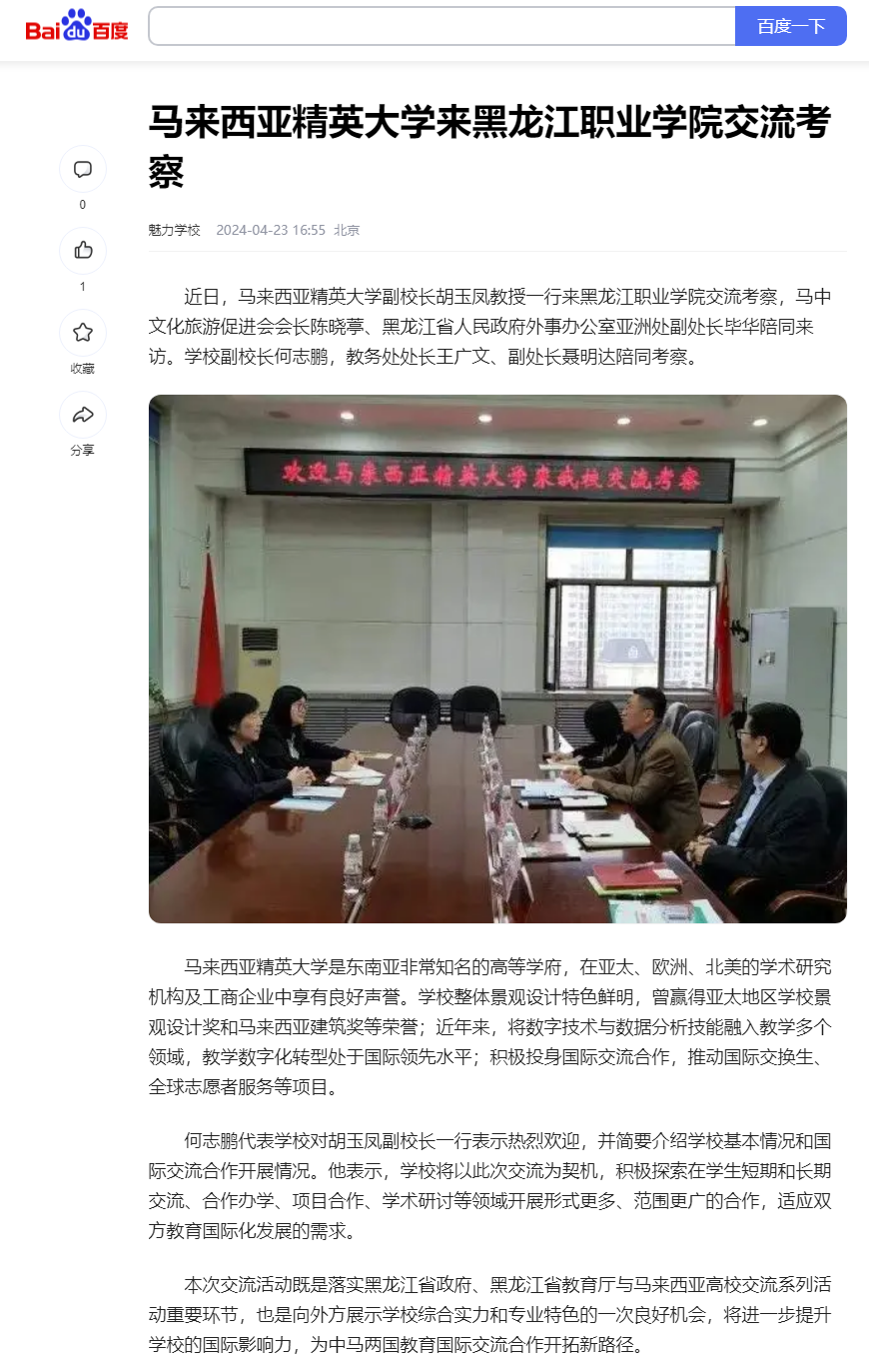 【今日头条】马来西亚精英大学来永利3544am登录官网交流考察