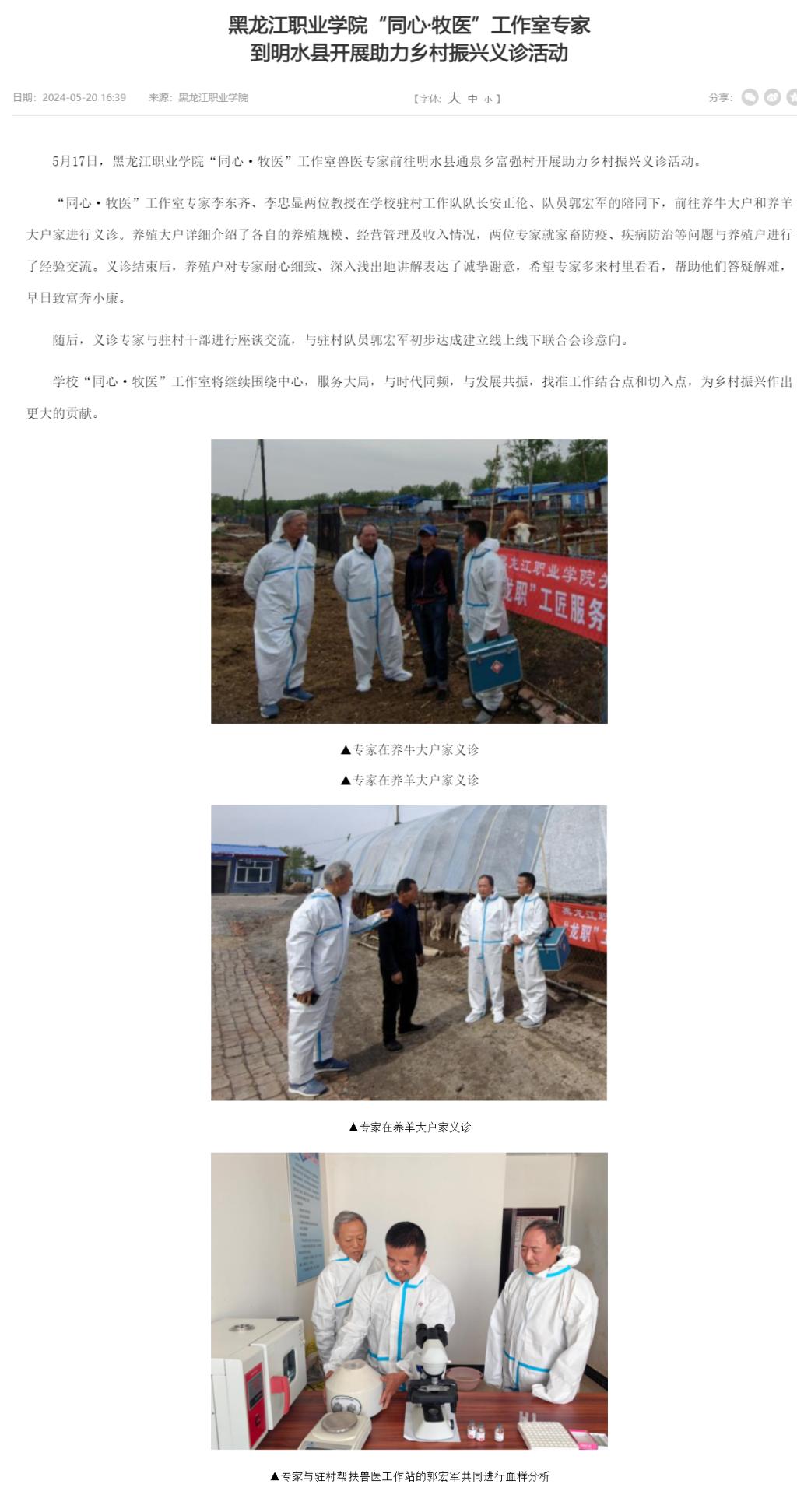 【黑龙江省教育厅】永利3544am登录官网“同心 牧医”工作室专家到明水县开展助力乡村振兴义诊活动