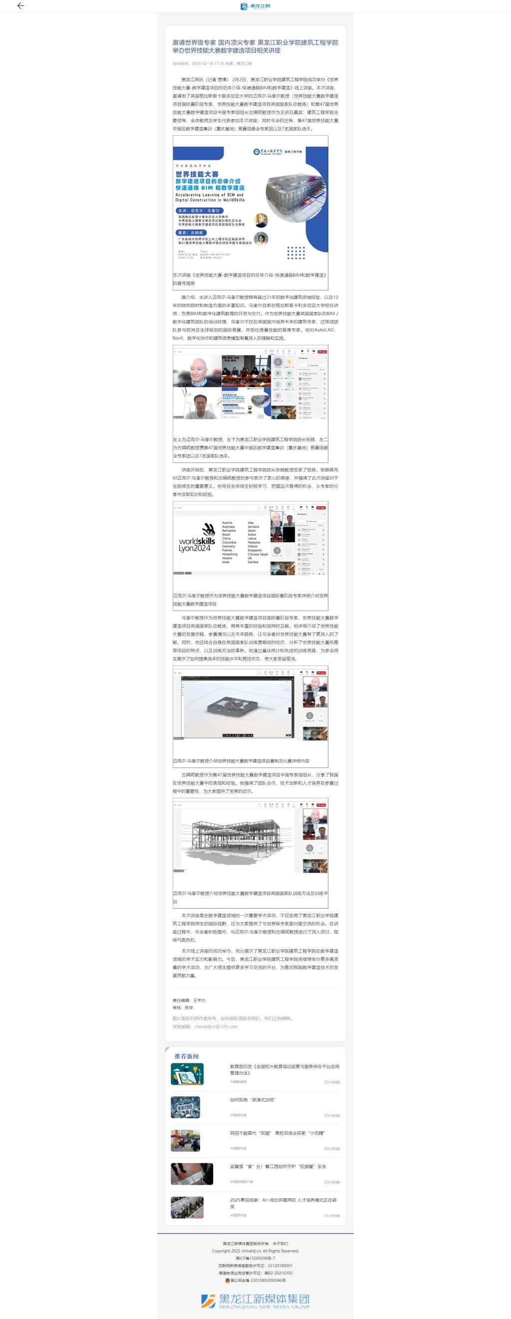 【黑龙江网】邀请世界级专家 国内顶尖专家 永利3544am登录官网建筑工程学院举办世界技能大赛数字建造项目相关讲座