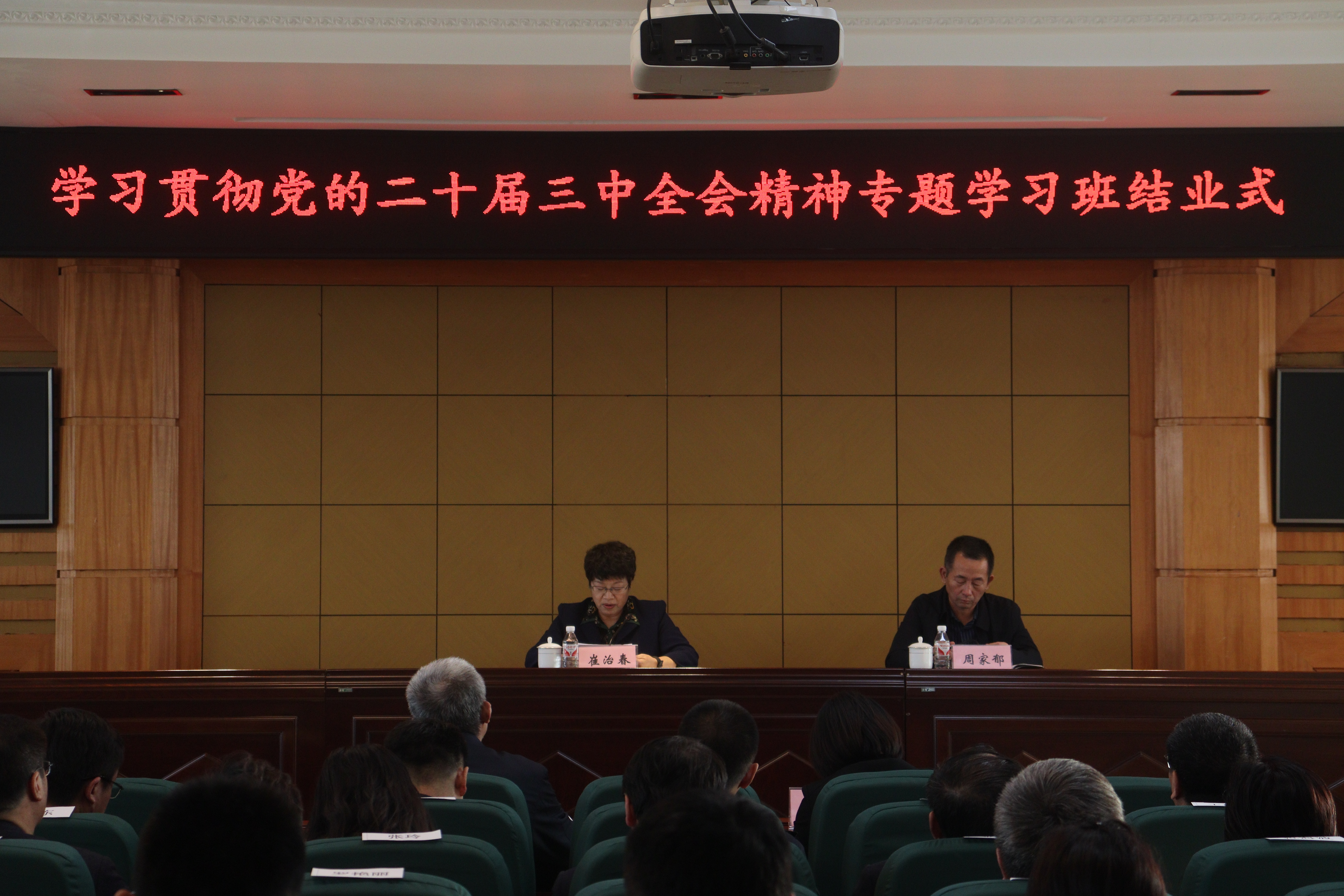 11月13日,学校举行学习贯彻党的二十届三中全会精神专题学习班结业式,党委书记崔治春作总结讲话,学校党委委员及全体处级干部参加结业式。结业式由党委副书记周家郁主持。