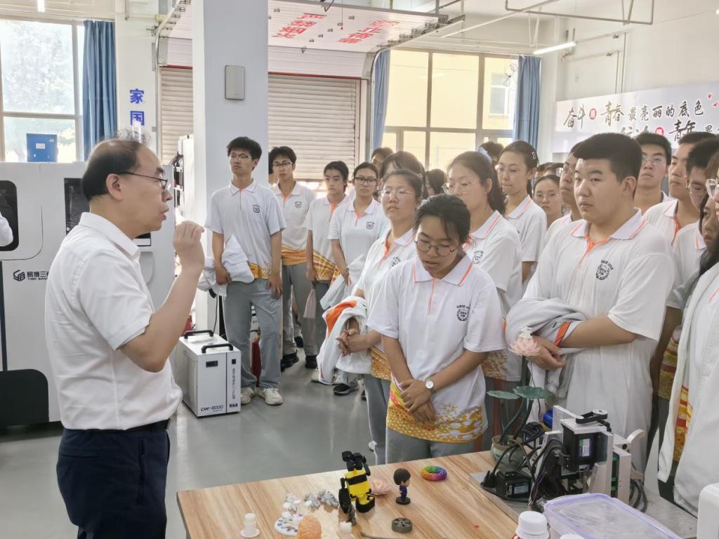在机械加工中心,李子峰为学生介绍了3D打印技术所使用的材料种类,这些材料在打印过程中通过层层叠加的方式构建出立体物件,详述了3D打印的步骤,从设计模型到最终成品的输出,每一个环节都充满了科技的魅力。