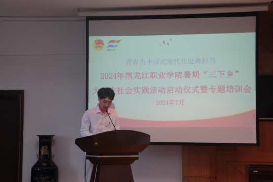 7月3日下午 2:00校团委在永利官网清华楼九楼报告厅开展2024年“三下乡”大学生社会实践活动启动仪式暨专题培训会。参会人员有马克思主义学院党总支书记程刚、学生工作部部长赵彦生、校团委全体教师代表、二级学院团总支书记、教师副书记、实践团队学生代表,启动仪式由校团委副书记唐晓恬主持。