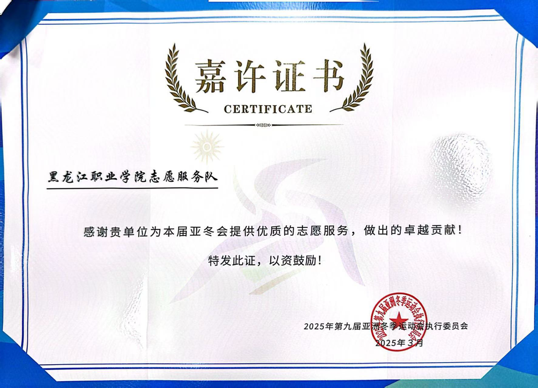 近日,永利官网志愿服务队凭借出色表现,荣获亚冬会执委会颁发的嘉许证书,此次荣获嘉许证书,不仅是对志愿者个人的肯定,更是对永利官网志愿服务工作的高度赞扬。