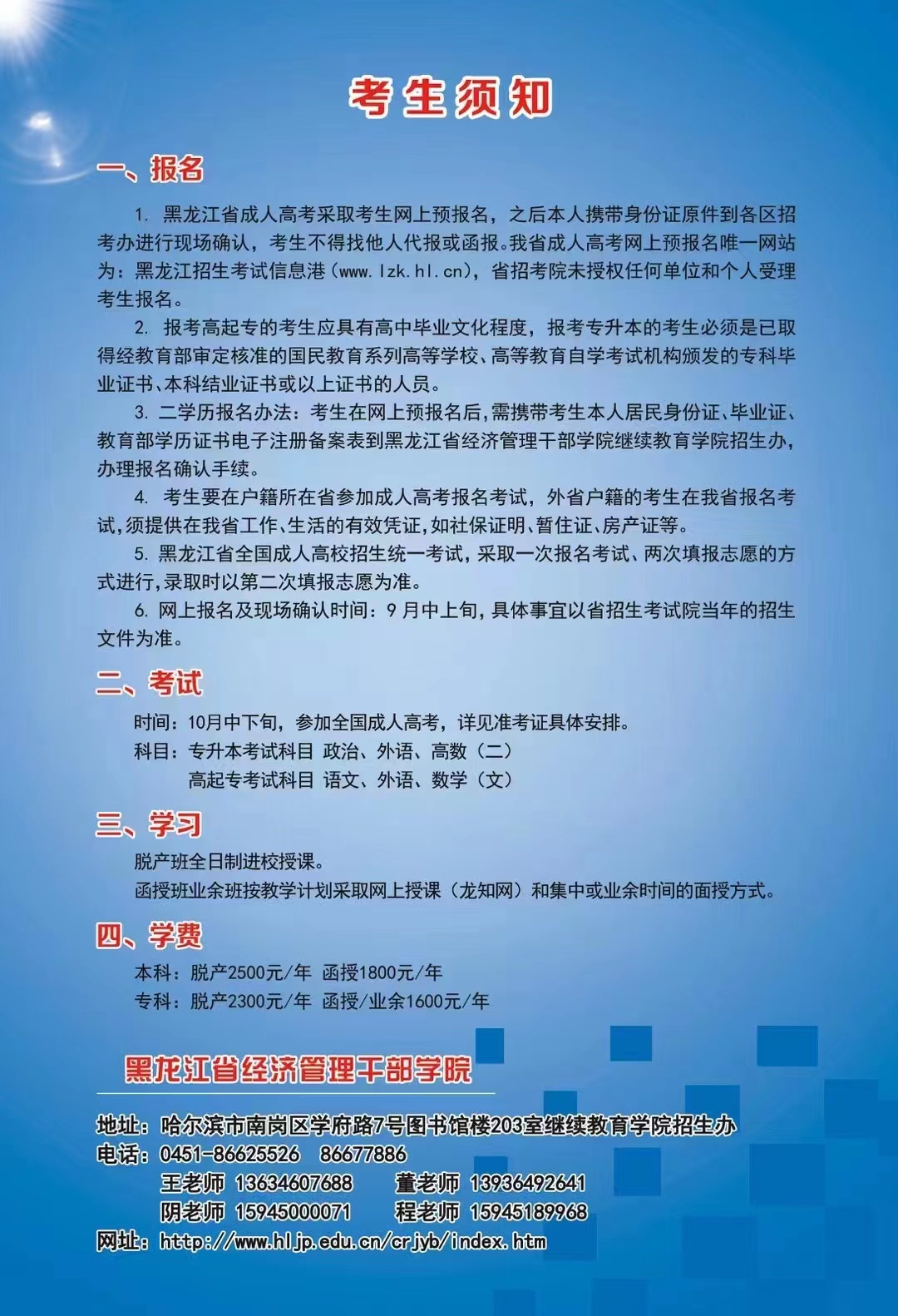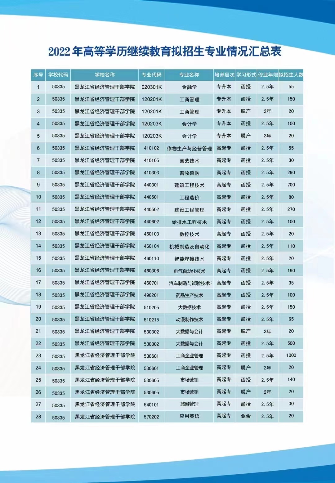 黑龙江省经济管理干部学院2022年高等学历继续教育招生简章