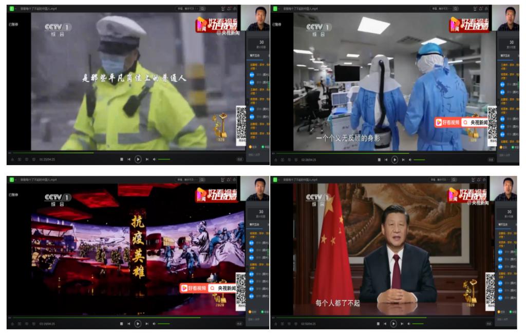 2020年抗疫涌现出的一个个义无反顾的身影,一次次心手相连的接力,一幕幕感人至深的场景,生动展示伟大的抗疫精神,郭宇用精心收集一段段影音素材深深感染着每一名学生。正如习近平说的“平凡铸就伟大,英雄来自人民,每个人都了不起”,青年学生要不负党和国家的殷切期望,不负韶华,刻苦学习。当下身居校园,要听党指挥,服从学校管理,不订外卖,不吸烟,为大家营造一个健康的学习环境,让师生心手相连,共同抗击疫情!