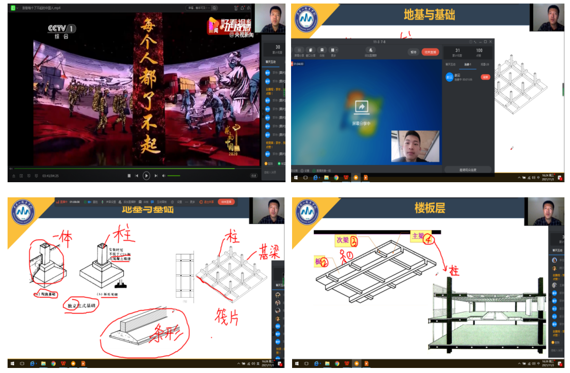 疫情防控期间,学校教学授课全部转为线上,建筑工程学院全体教师以高度的责任感和使命感积极做好线上授课工作。面对当前严峻的疫情防控形势,全体教师以打赢龙职战“疫”为契机,坚持立德树人的育人理念,进一步扎实推进课程思政教育。全体教师在线上授课过程中结合电影《长津湖》战役相关素材,将爱国主义教育融入线上课程体系和教学过程中,引导学生学习志愿军战士视死如归、保家卫国的革命精神,正确树立龙职战“疫”必胜的信念和决心。
