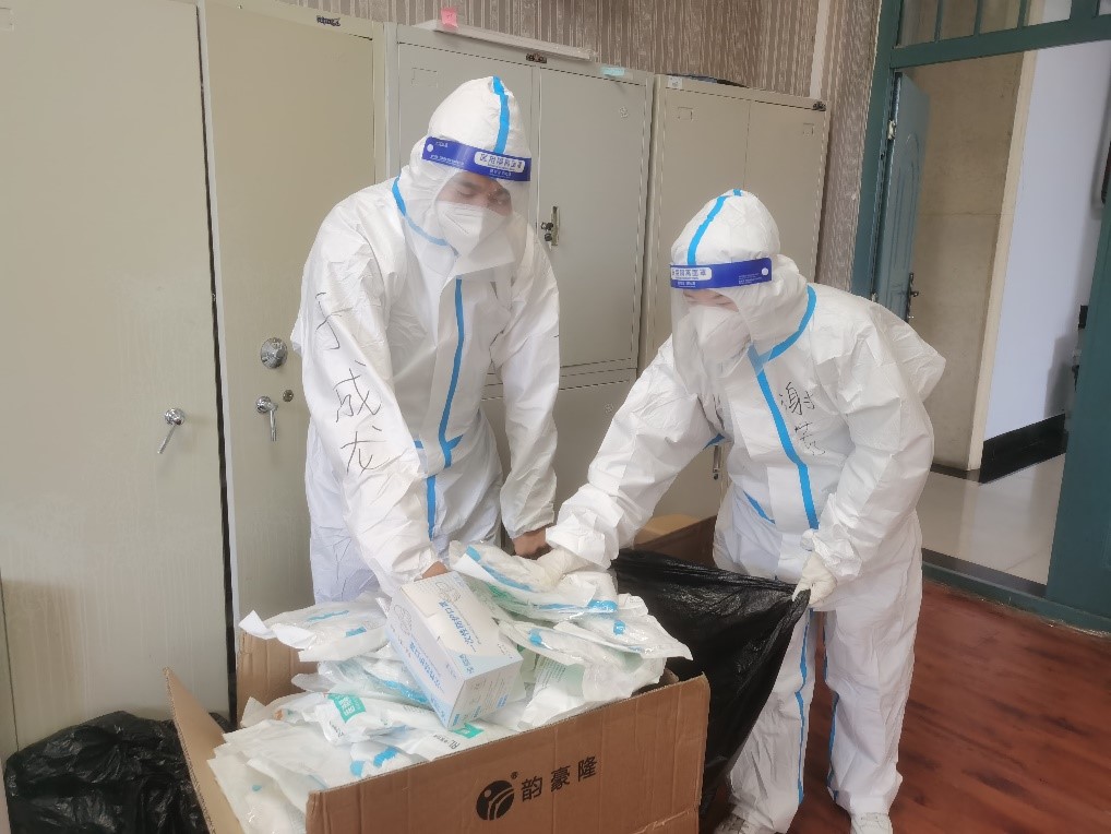 坚持先锋引领,凝聚全员力量。在旅游与人文艺术学院党总支号召下,多名党员教师主动申请进入寝室参与静默管理,最终决定由副院长刘莉、教学工作负责人刘宏申和专业教师杨威第一批进入学生寝室。党总支书记李勇民、副书记杜超和全体辅导员、专业教师志愿者24小时轮岗保障学生用餐、处理学生突发事件。在学生返校期间,接待报到学生273人核对信息并逐一送入寝室,统计已报到学生预定餐食1000余份,发放餐食水果1000余份。第一批进入寝室的党员干部在学生静默管理期间,组织学生有序完成三天两次的核酸检测,对寝室进行全面消杀,禁止学生擅自出入其它楼层,为学生购买特殊生活用品,按时发放餐食,保障了学生在学校期间的学习生活。22日凌晨3时,一名学生突发心脏病,心跳一度达到200次每分钟,薛青智老师得到消息后立即把学生送到医院,护理学生一直到第二日中午待学生家长达到后,方才离开,继续投入到学校工作中。22日,卢丙洋老师在送餐期间发现两只蝙蝠飞进女生寝室,为了避免学生恐慌,将两只蝙蝠赶出了寝室,并第一时间安抚了学生。因学生刚返校,存在一些对静默管理不理解且有情绪的学生,在寝室的老师及时发现苗头,对他们进行心理疏导,并一对一宣传疫情防控政策。