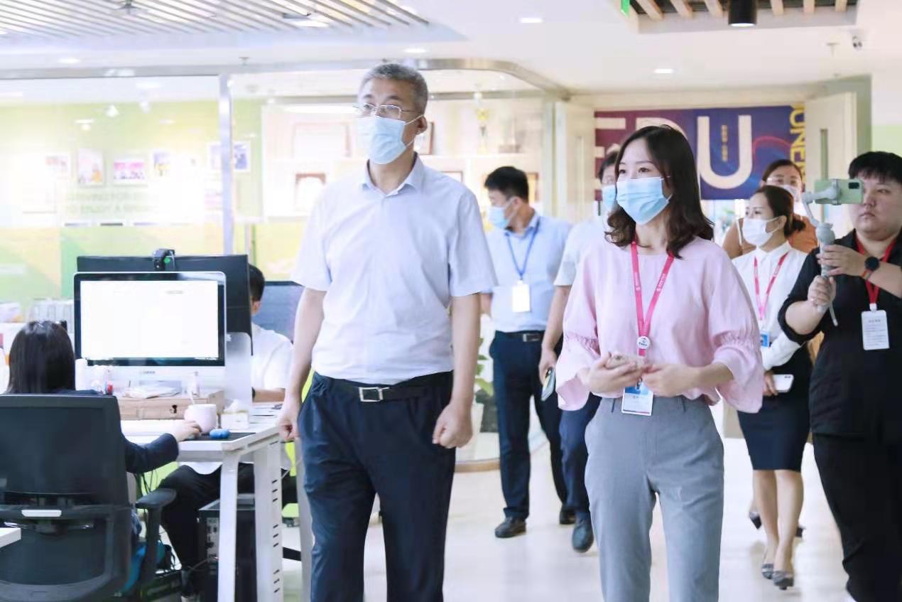 在参观走访过程中,聚能教育相关负责人陪同王院长参观了办公区、党建室、聚能教研院、食堂等,详细介绍了聚能教育的业务发展、战略规划、发展历程等情况。期间,王校长对学生的实习岗位、实习内容、实习收获、实习待遇和安全保障等方面情况进行了询问。