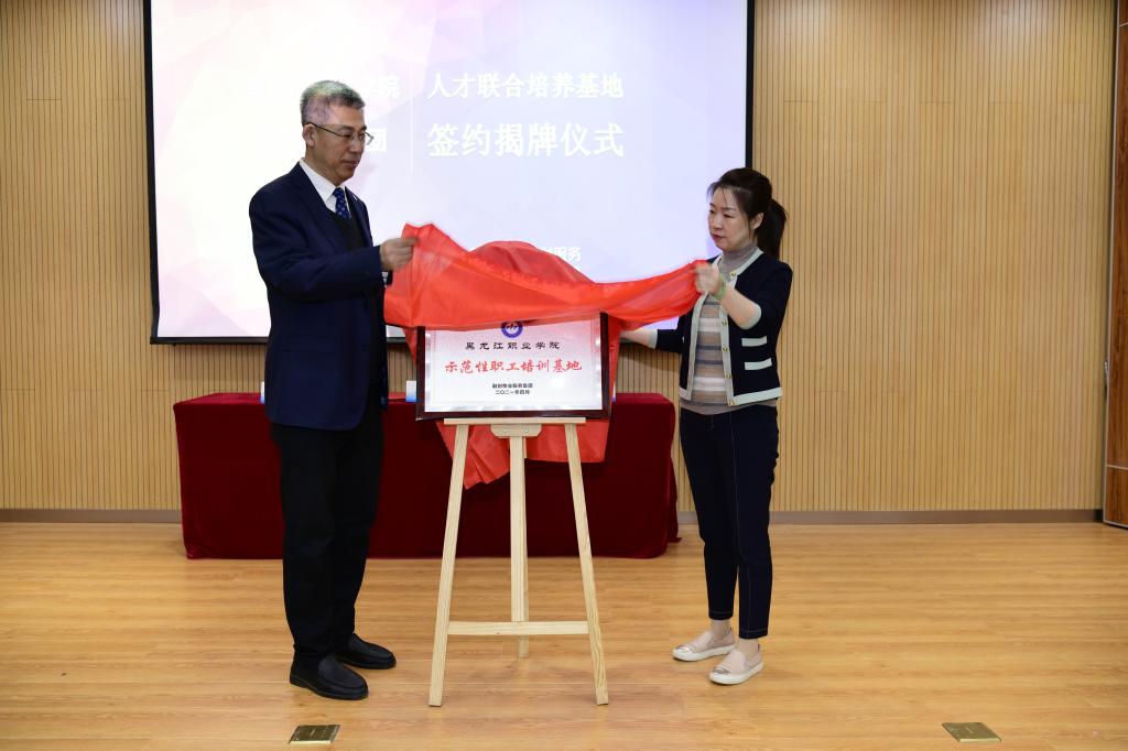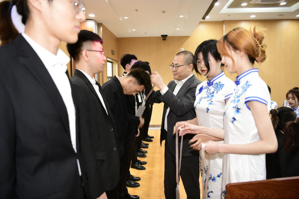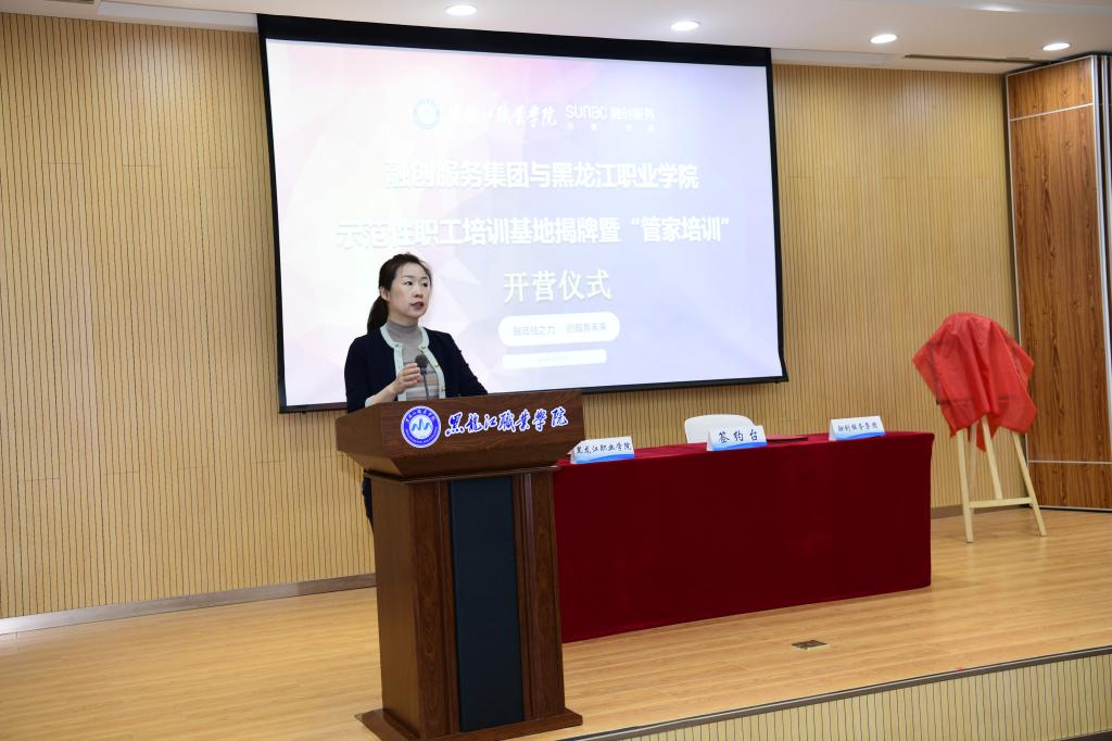 接着,融创集团副总裁杨静、住宅运营管理中心总经理吉相海、人力资源部总监张东浩分别致辞。随后,王利文校长与张东浩总监签署校企产教融合战略合作意向书,王利文校长与杨静副总裁共同为“融创服务集团与永利3544am登录官网示范性职工培训基地”揭牌。20位来自工管学院的学生入职融创集团担任管培融耀生并在会议现场进行入职宣誓。他们共同宣誓传承龙职精神与铺路石文化,当好企业铺路石,为实现融创集团更加辉煌的明天而努力奋斗。集团住宅运营管理中心总经理吉相海、哈尔滨公司总经理刘树荣为融耀生们授予了员工工牌。之后为期两天的“优秀管家培训”正式开始,来自融创集团的47位管家接受培训,由校企双方共同指派讲师,讲授中国现代服务业发展趋势及物业服务等级标准等内容。