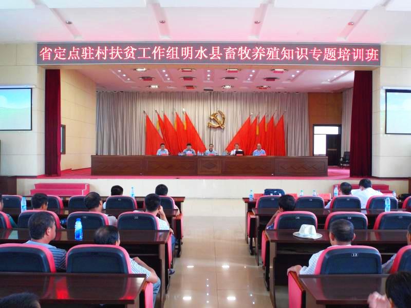 7月20日,在黑龙江省定点驻村扶贫第23工作组的带领下,黑龙江省畜牧兽医职教集团专家组奔赴明水县开展扶贫培训专题讲座。集团常务理事陈晓华教授、吴学军教授、集团专家、永利3544am登录官网党委组织部长钟敏强,孙英杰教授前往参加。明水县副县长付忠、明水县扶贫办副主任王富鹏及明水县畜牧兽医局技术人员、乡镇主管农牧业副乡长、乡镇畜牧技术服务中心技术人员与养猪场(户)、养肉牛、肉羊场(户)负责人等430多人参加了畜牧养殖知识专题培训。