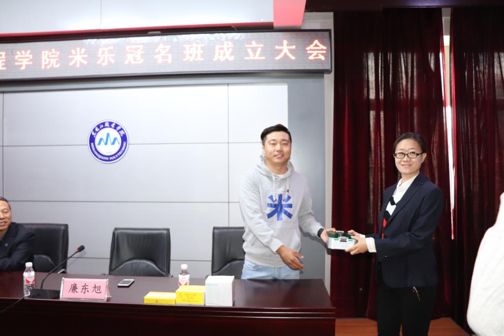 会上,我院2015级毕业生韩阅臣分享了自己在鸡场顶岗实习及后来入职北京米乐动物医院有限公司的亲身经历和成长过程,让同学们坚定了从事宠物医疗行业的初心;公司总经理廉东旭是我院2007年毕业生,目前旗下拥有6家宠物医院,他的宣讲让同学们了解了米乐动物医院的企业文化、冠名班的培养计划及人才培养发展途径,使同学们进一步明确了个人的职业生涯规划。成立大会上,廉总还将价值壹万元的学习用品现场赠与了冠名班同学,用于平时的技能培训。