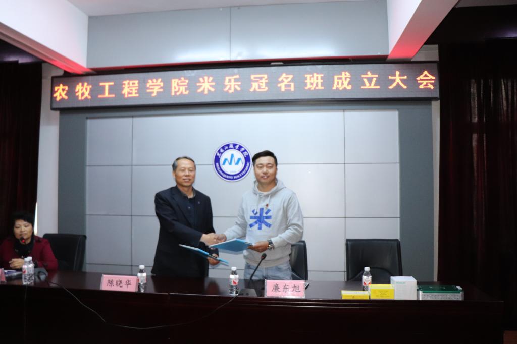 陈晓华院长代表农牧工程学院介绍了此次校企合作的重要意义,并对同学们提出了殷切希望,极大地调动了同学们的学习积极性。最后校企双方领导签订了校企合作协议。