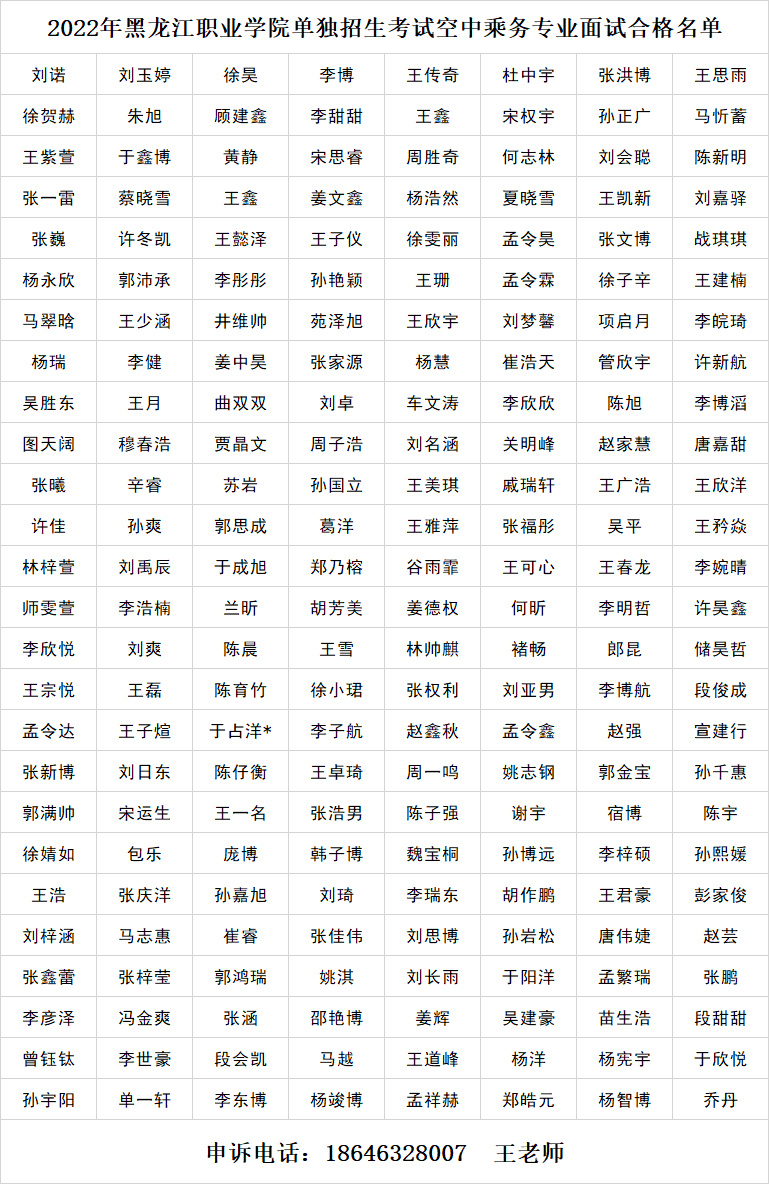 永利3544am登录官网2022单招空中乘务专业面试合格名单