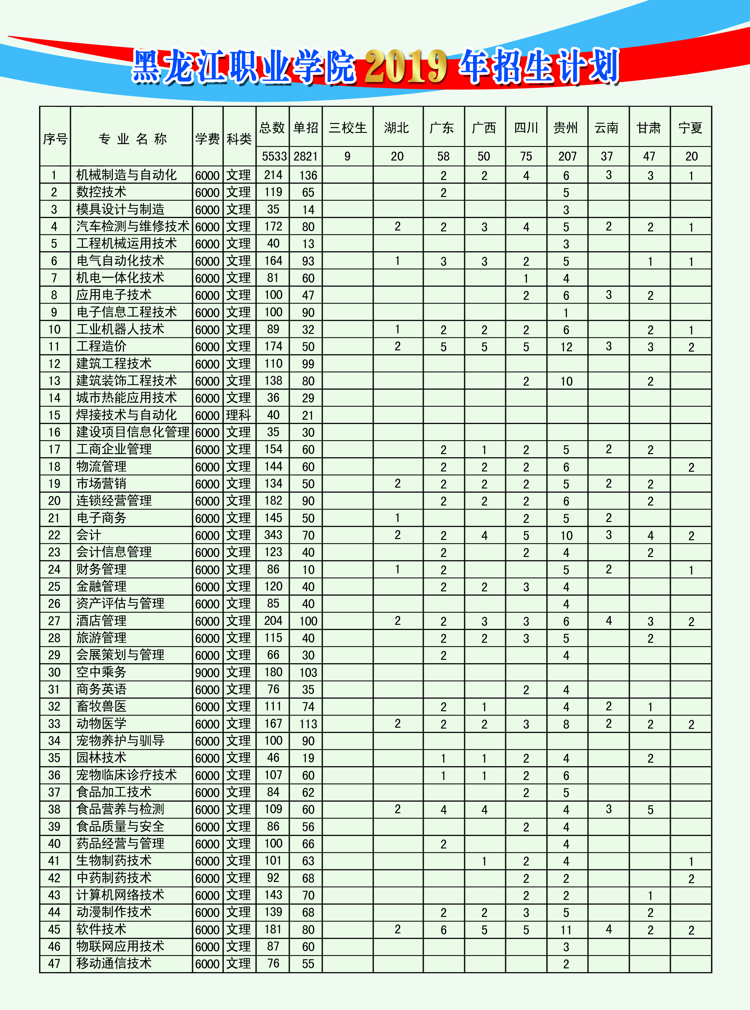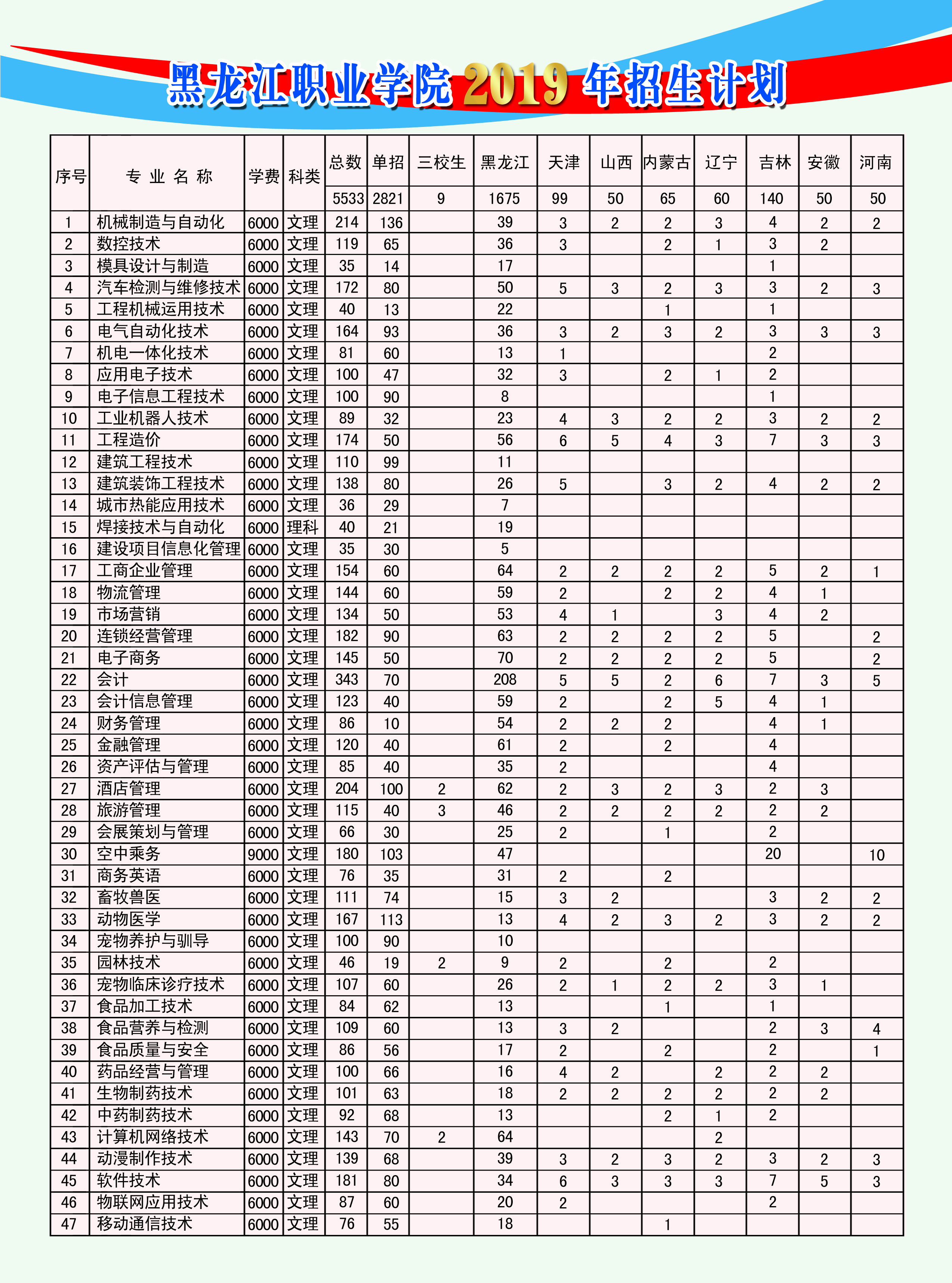 永利3544am登录官网2019届分省分专业招生计划