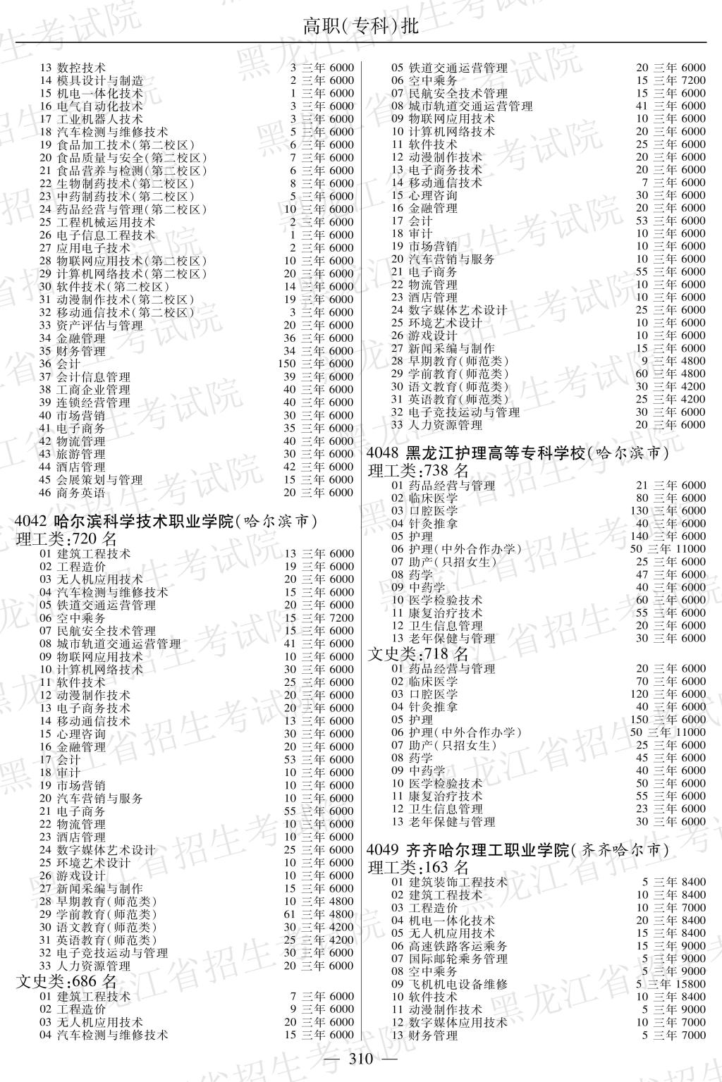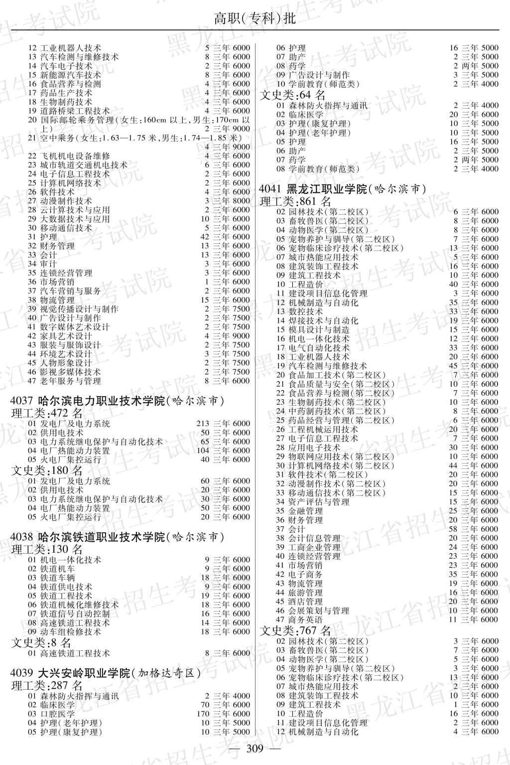 黑龙江省2019年全国普通高校招生计划【高职(专科)】P309-310